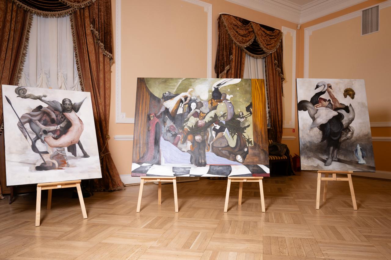 Работы Беллы Новиньковой: "В ожидании героя", "Спектакль окончен", "Театр несыгранных спектаклей" (слева-направо)